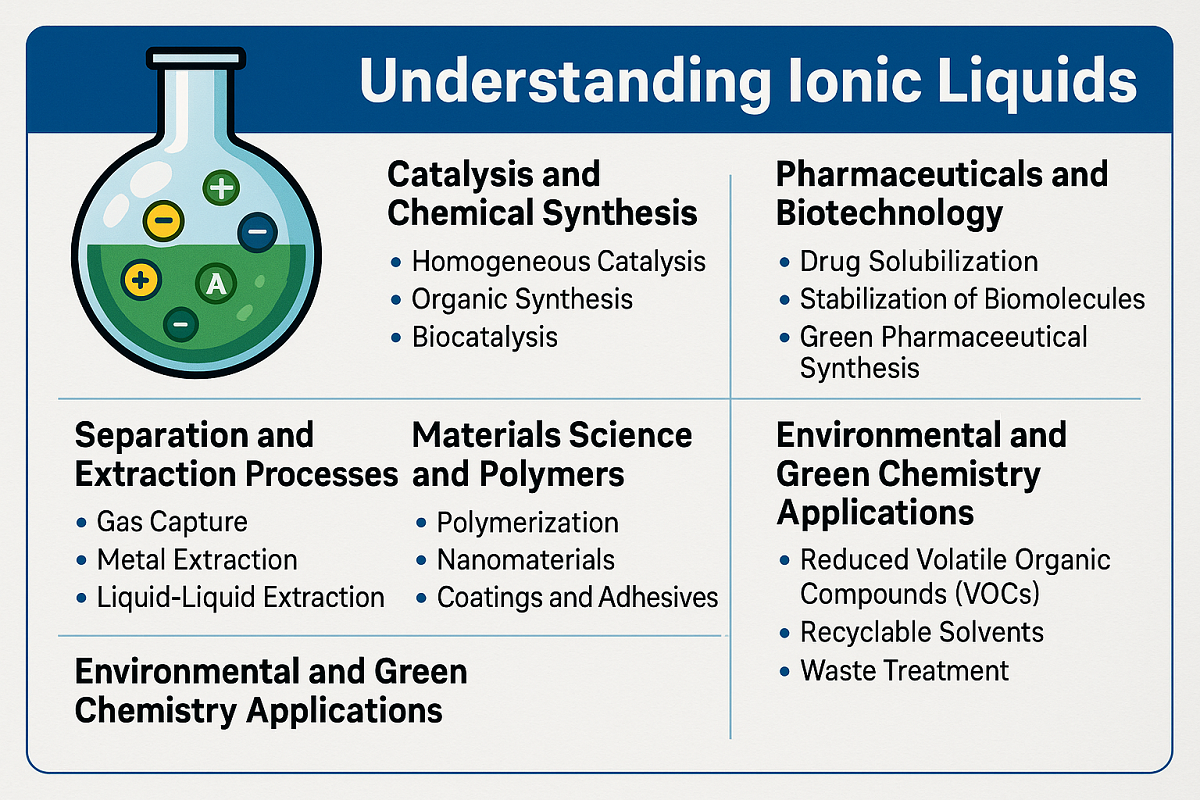 Ioniske væsker (ILs) har dukket opp som en transformativ klasse av kjemiske forbindelser i moderne industri. Disse saltene består utelukkende av ioner, og forblir flytende ved relativt lave temperaturer, ofte under 100°C. Deres unike egenskaper – inkludert ubetydelig damptrykk, høy termisk stabilitet, justerbar løselighet og eksepsjonell ionisk ledningsevne – gjør dem attraktive alternativer til tradisjonelle organiske løsningsmidler og reagenser. I løpet av de siste to tiårene har ioniske væsker utvidet seg fra nisjelaboratorieforskning til et bredt spekter av industrielle anvendelser, og har påvirket felt fra katalyse til energilagring, farmasøytiske produkter og materialbehandling.